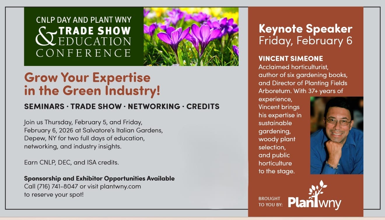 2026 CNLP Day, Hort 101 Day & Trade Show & Education Conference CNLP Day on Thursday – full day of certification seminarsHorticulture 101 on Thursday – geared for employees to learn valuable skillsFull day of seminars on FridayTrade show on FridayCNLP and DEC credits Sign up to be notified of detailsPlease enable JavaScript in your browser to complete this form.Name *FirstLastPhoneEmail *Comment or Message *Submit+ Add to Google Calendar+ iCal / Outlook export 00days 00hours 00minutes 00seconds DateFeb 05 - 06 2026 Category EventsShare this event